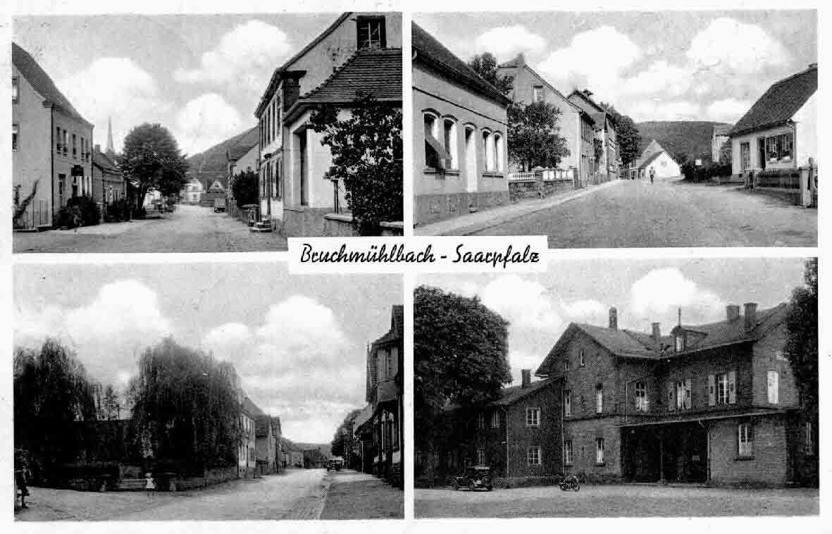 Diese Karte wurde von dem Friseur Urban Schneider herausgegeben. Die Aufnahmen stammen etwa aus dem Jahr 1938. Oben zweimal die Kaiserstraße unten der Bahnhof und der Kreuzungsbereich mit der Straße nach Lambsborn.