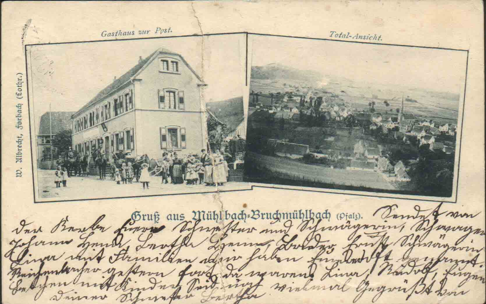 Diese frühe Fotokarte wurde 1898 geschrieben. Vor der alten Post kann man auch die Postkutsche erkennen.