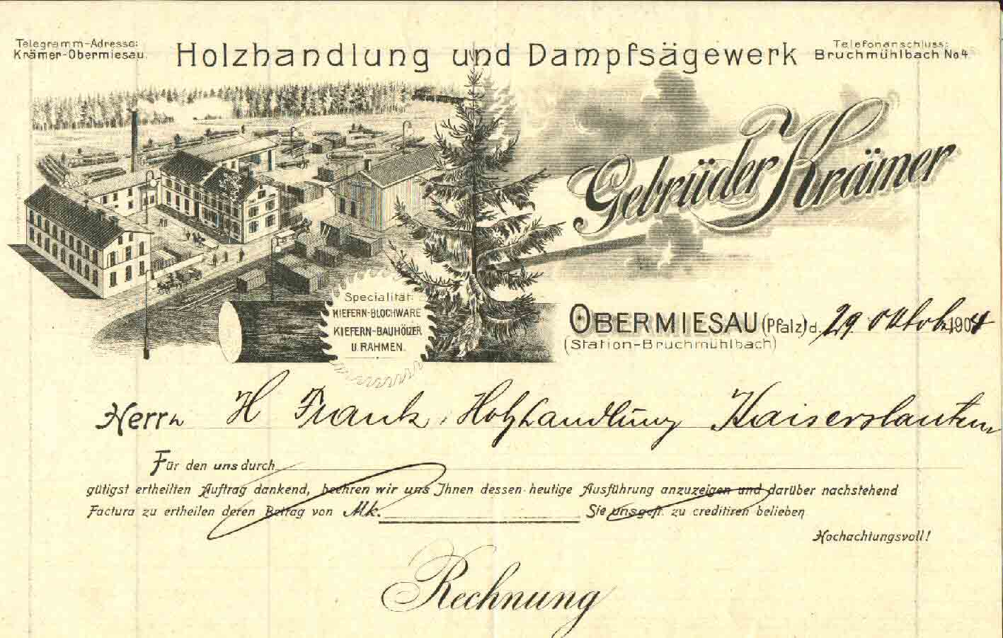 Briefkopf einer Rechnung aus Obermiesau aus dem Jahr 1904.