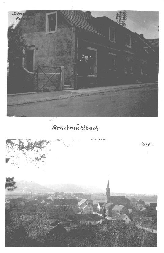 Diese Fotokarte wurde von dem Friseur Schneider herausgegeben. Oben das Geschäftshaus, unten ein Blick über Bruchmühlbach. Die Karte wurde 1932 nach Österreich verschickt.