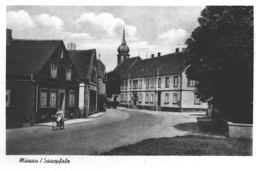 Wohl eine der häufigsten Motive aus Miesau, die Passage mit Blick auf die Schulhäuser. Diese Karte wurde 1940 geschrieben.