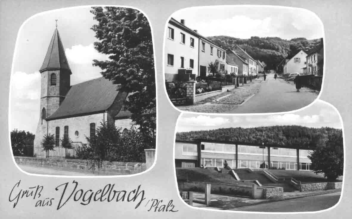 Vogelbach um das Jahr 1970. Links die Simultankirche, oben rechts ein Blick in die Wagnerstraße.